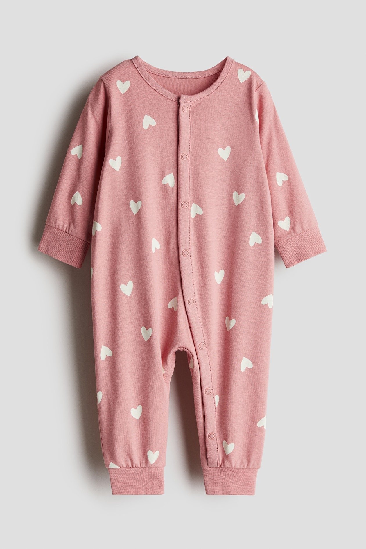 Sleepsuit in supersoft cotton jersey with an all-over print. Long sleeves with trims at the cuffs and long legs with cuffed hems. Press-studs down the front and one leg for easy changing.