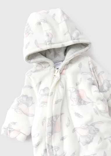 Wrap your little one in magical comfort with the Disney Baby Cream Dumbo Pramsuit. Featuring an adorable design inspired by the beloved Disney character, this pramsuit is perfect for keeping your baby warm and cozy during outdoor adventures. Creamy neutral tone, adorned with charming Dumbo-themed embroidery and detailing.