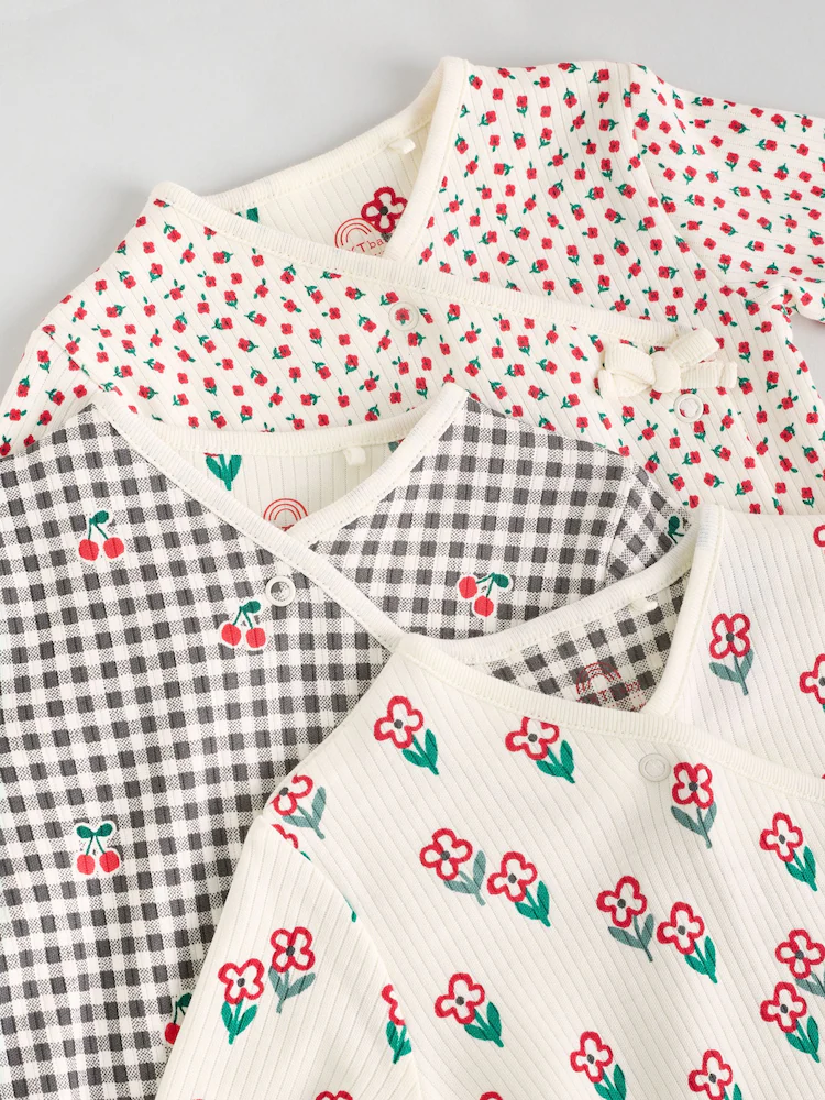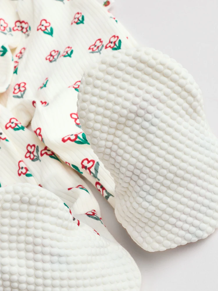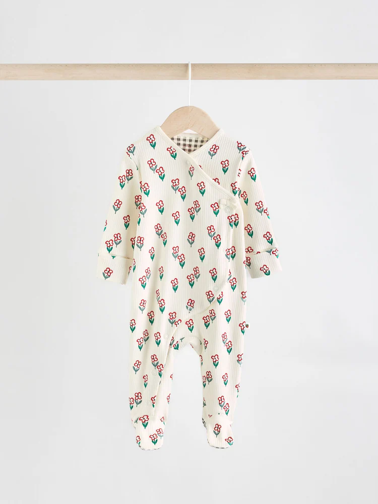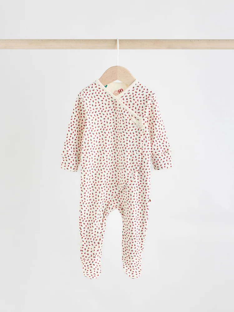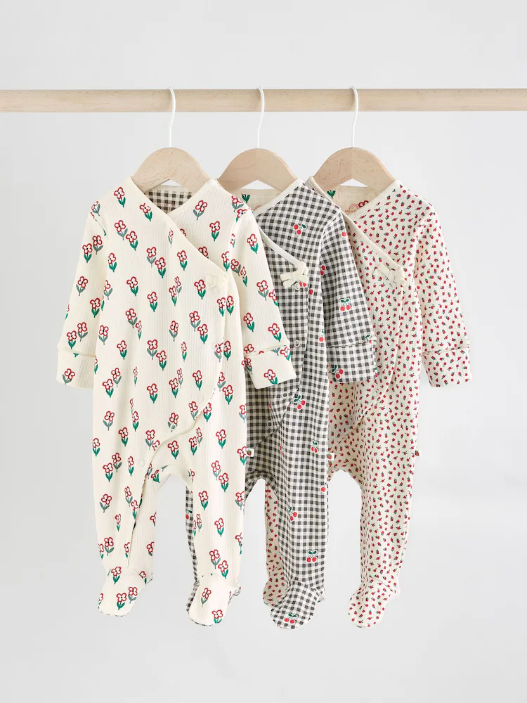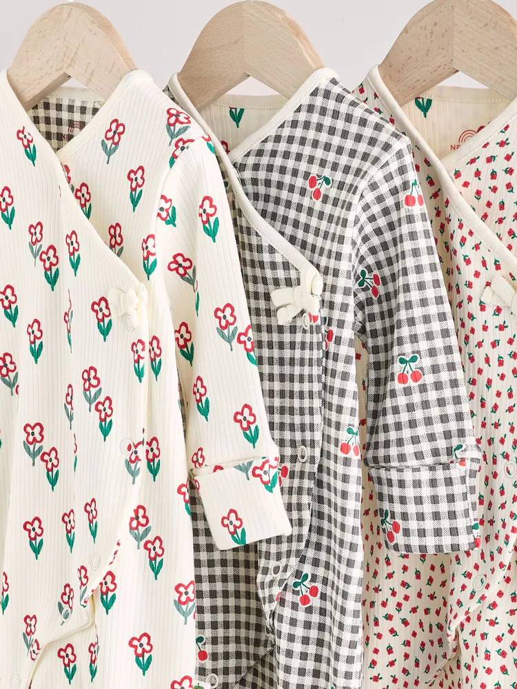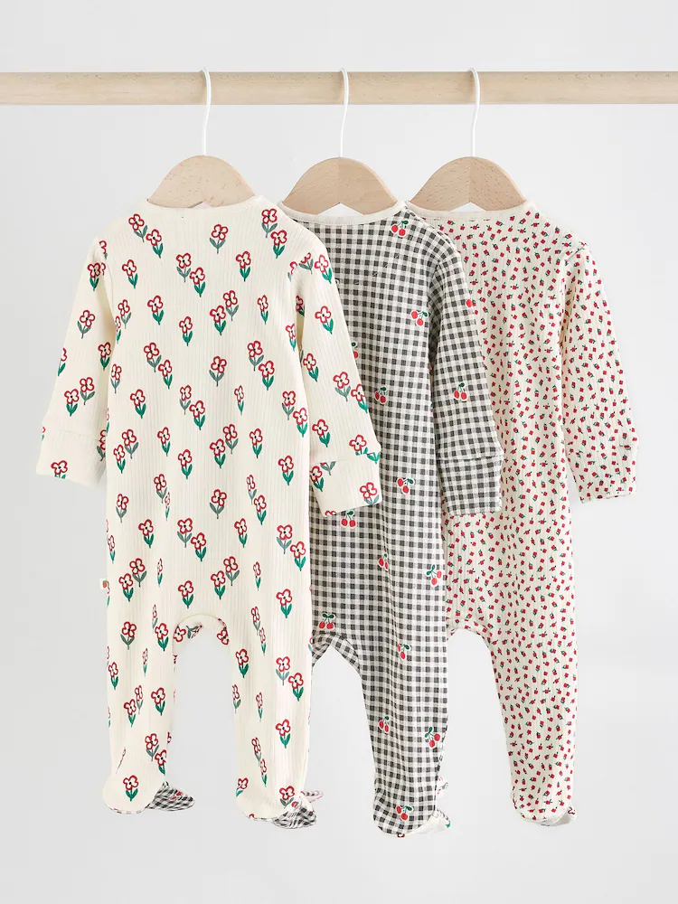 Comfortable and cosy, these cream and red pure-cotton sleepsuits come in a handy 3-pack, with a popper front fastening.