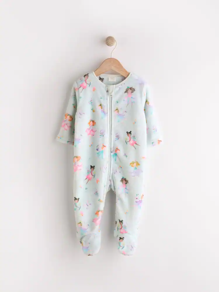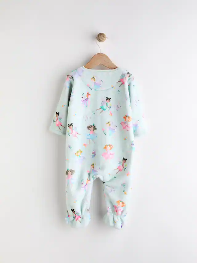 This warm and super soft mint green sleepsuit is made from a micro fleece fabric with a zip fastened front for easy dressing, finished with built-in feet.