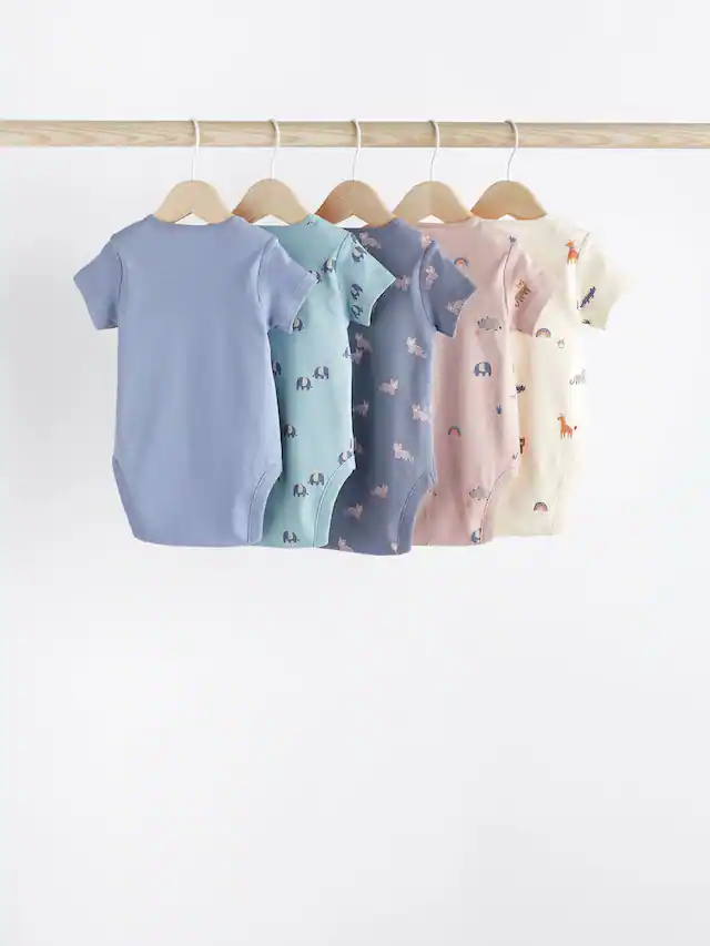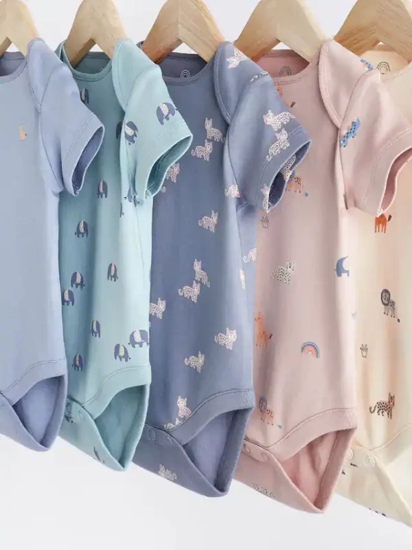 Our teal blue-pack baby short-sleeve bodysuits are the perfect all-in-one solution for your little one. Made from 100% supersoft cotton, these bodysuits are not only comfortable but also durable, ensuring long-lasting wear for your baby’s everyday adventures.