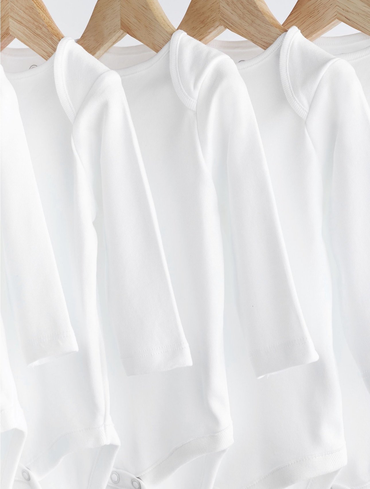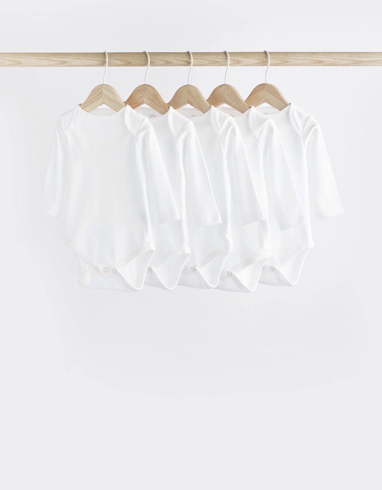 Our essential baby long sleeve bodysuits in a 5 pack are a supersoft must-have for your little one’s wardrobe. Crafted from 100% cotton, these bodysuits are gentle against delicate skin and feature nickle-free poppers for fuss-free changing. Each bodysuit comes with a printed back-neck label that’s soft against your baby’s neck. With seven in a pack, you’re set for a week of comfy, cosy dressing.