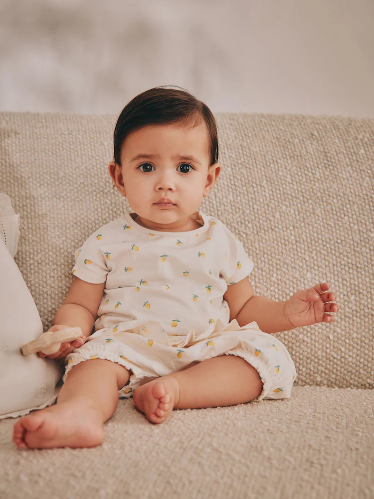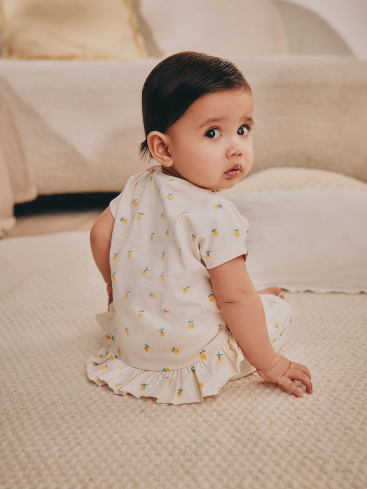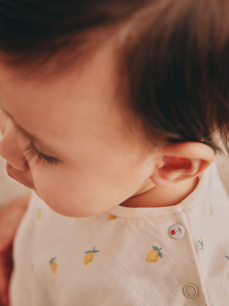 This 6-piece set features short-sleeved tops with popper fastening on the shoulder.